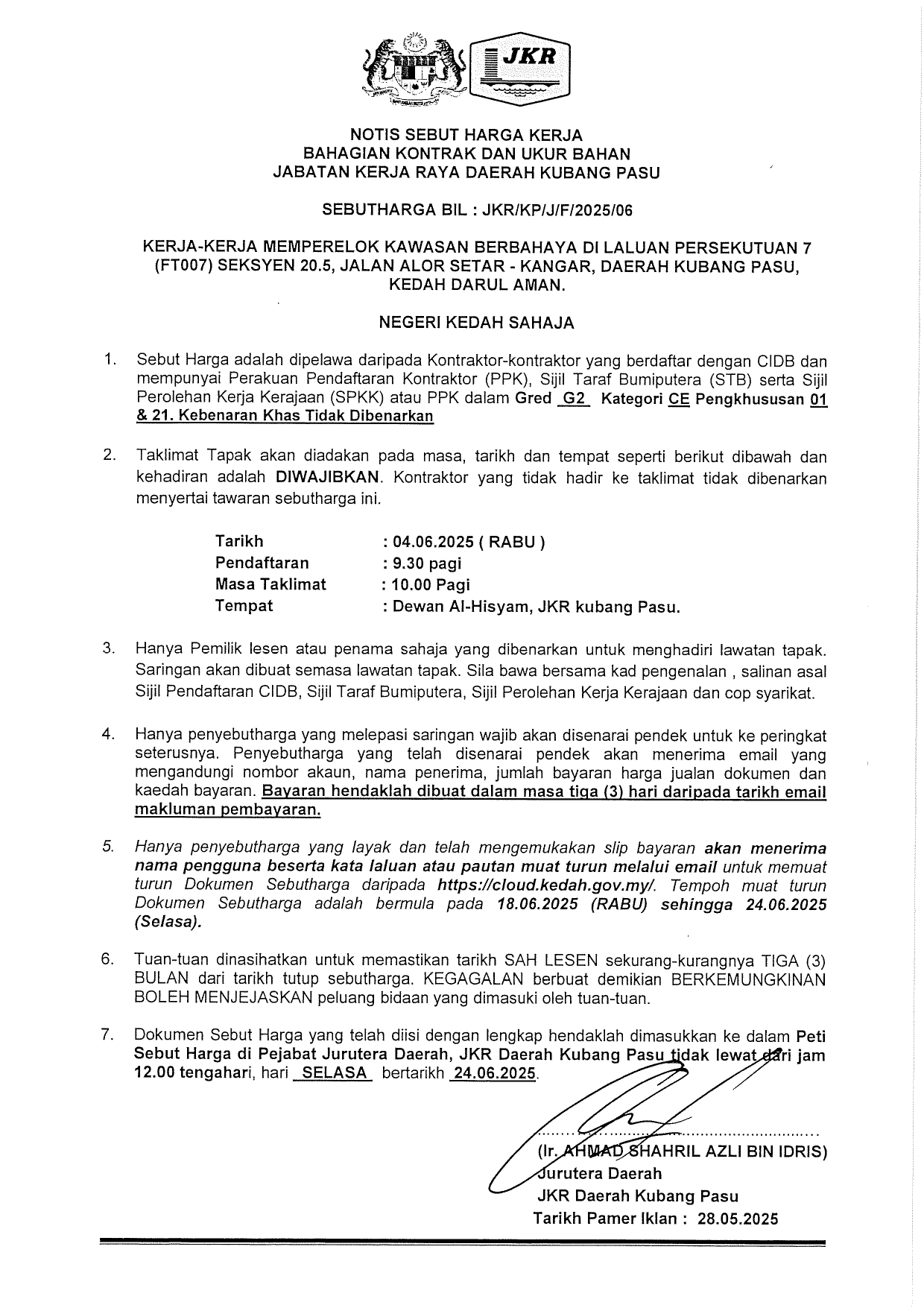 No. SEBUTHARGA : JKR/KP/J/f/2025/06