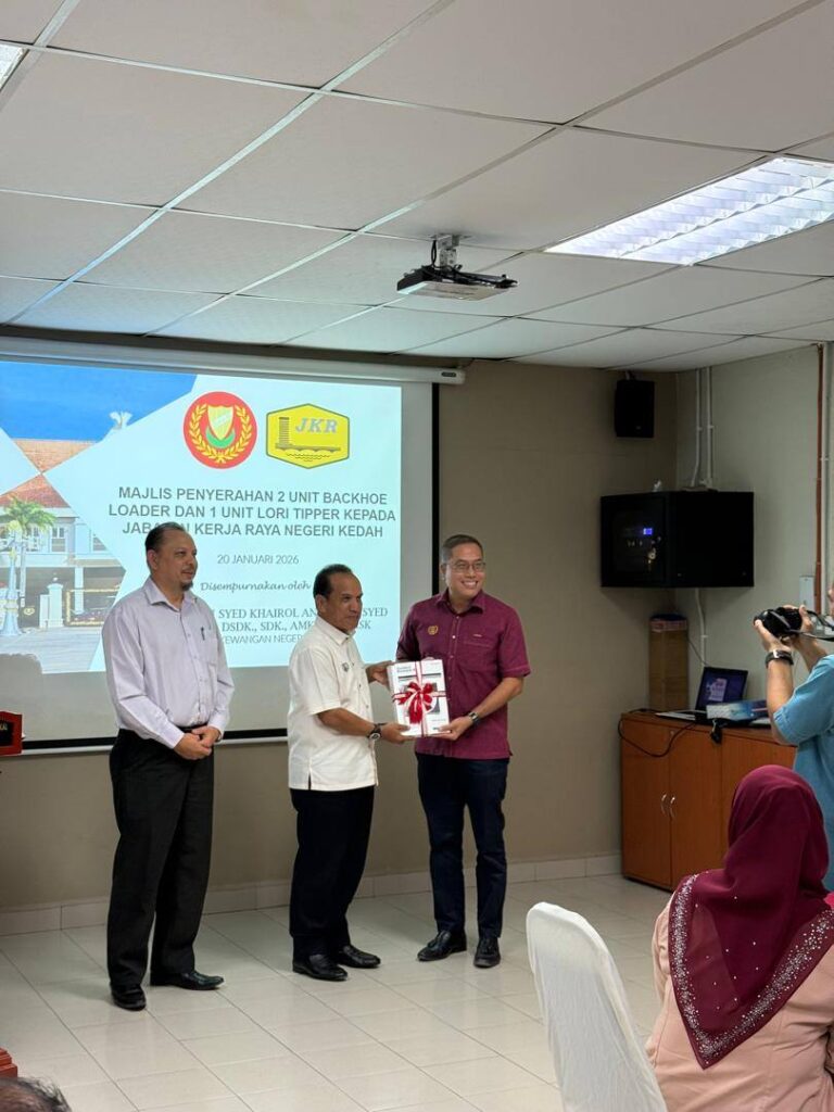 Majlis Penyerahan Aset Alih Jabatan Kerja Raya Negeri Kedah Tahun 2026 yang disempurnakan oleh Yang Berhormat Dato’ Wira Haji Syed Khairol Anuar bin Syed Abidin, Pegawai Kewangan Negeri Kedah yang telah berlangsung bertempat di Cawangan Kejuruteraan Mekanikal JKR Negeri Kedah.