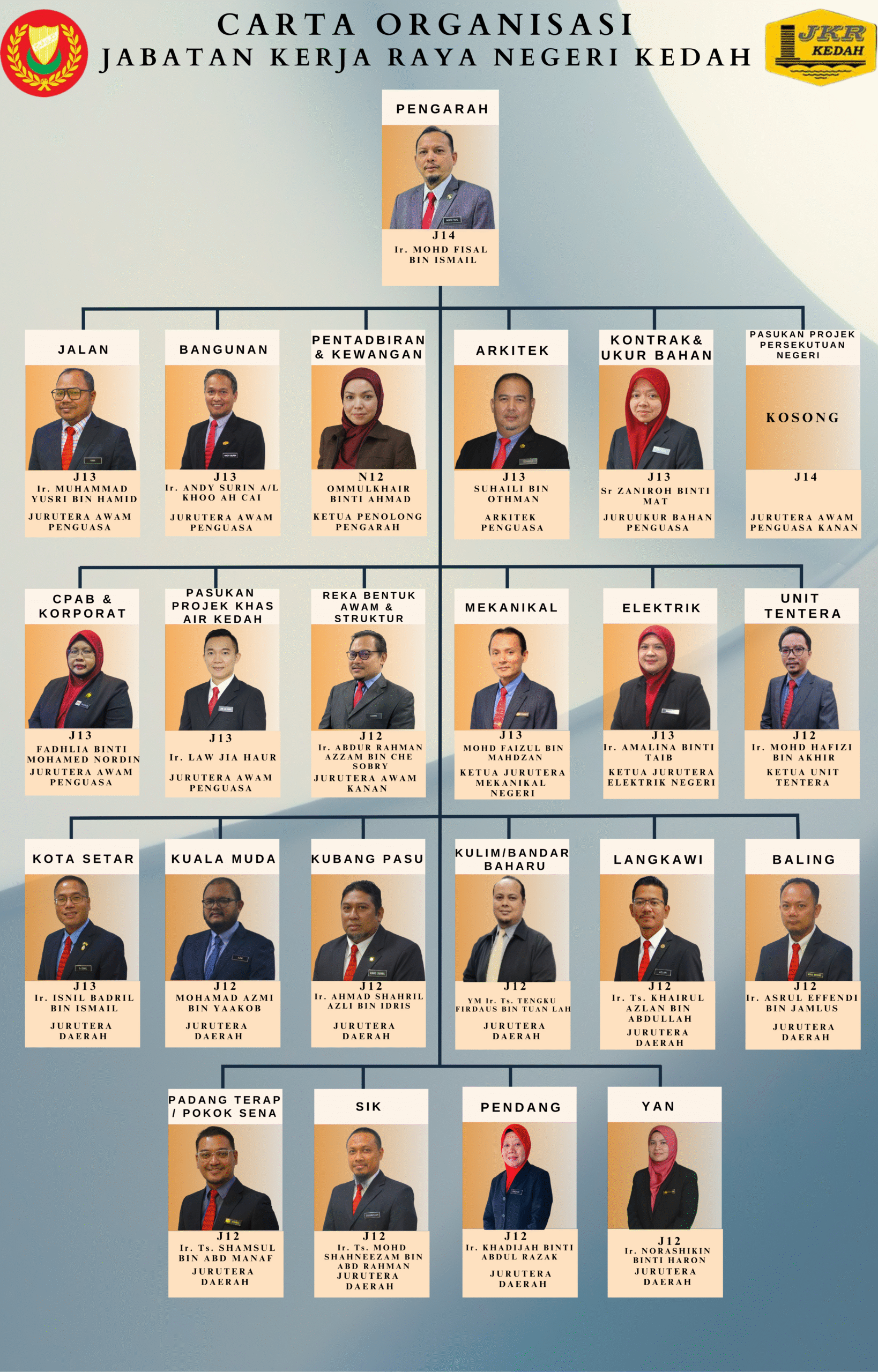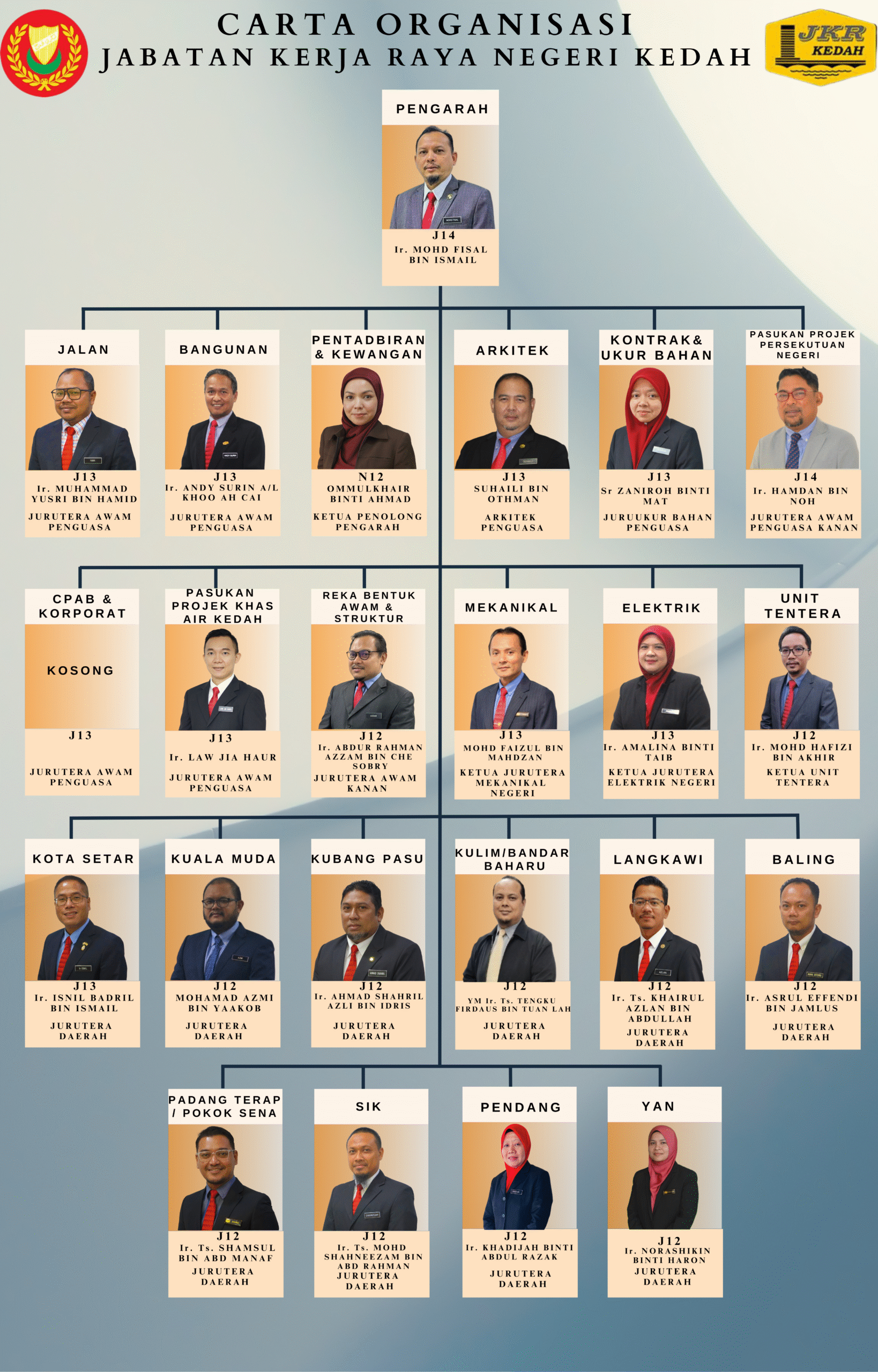 Jabatan Kerja Raya Negeri Kedah ditubuhkan pada 19.10.1955. Dahulunya, Jabatan Kerja Raya merupakan satu Jabatan Kerajaan yang diberi tanggungjawab memikul amanah dalam menyediakan kemudahan Infrastuktur Awam seperti Jalan, Bangunan, Jambatan, Lapangan Terbang dan Pelabuhan .