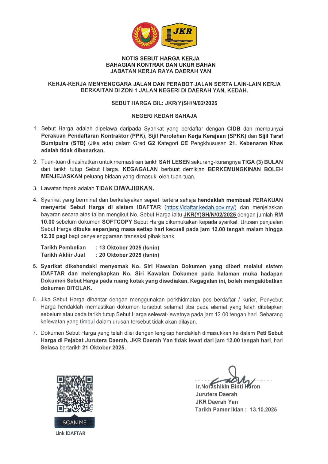 (SEBUT HARGA BIL : JKR(Y)SH/N/02/2025)