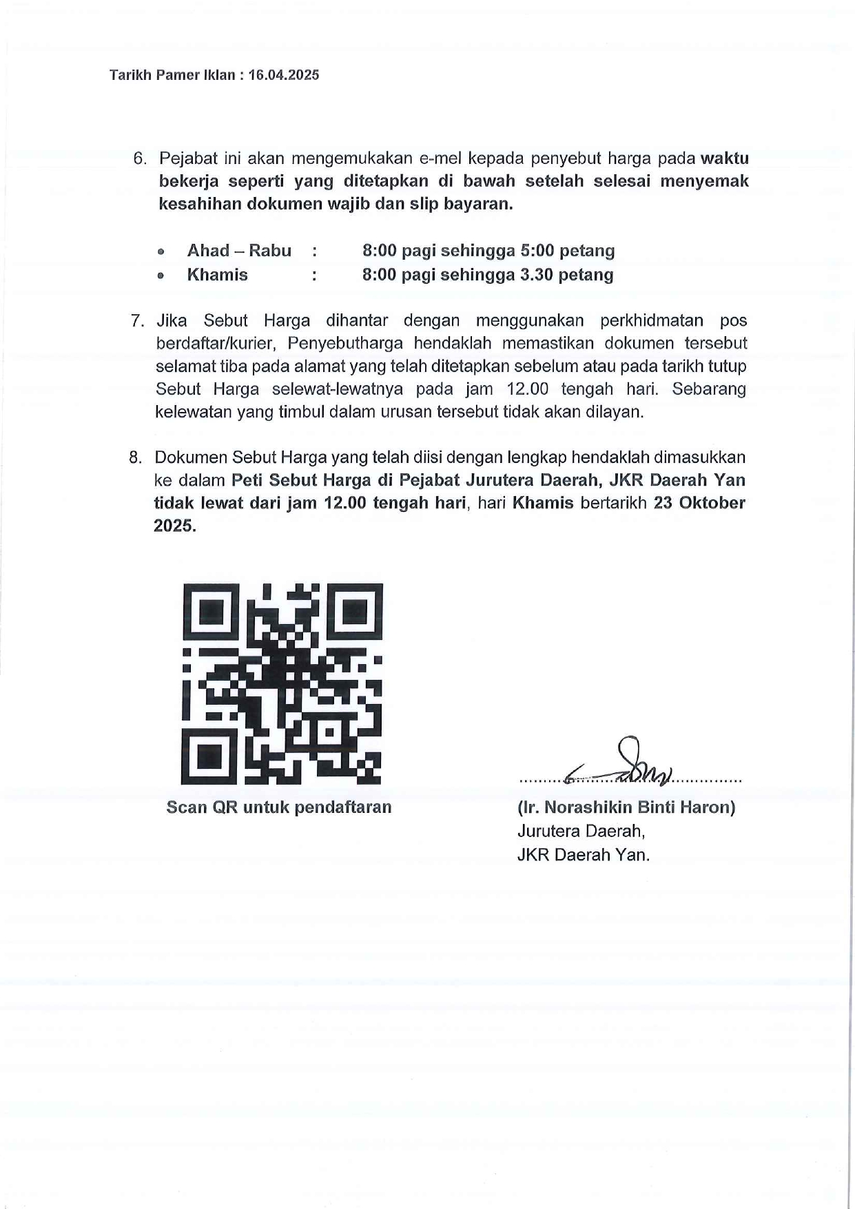 TARIKH IKLAN : 16 OKTOBER 2025 (KHAMIS)